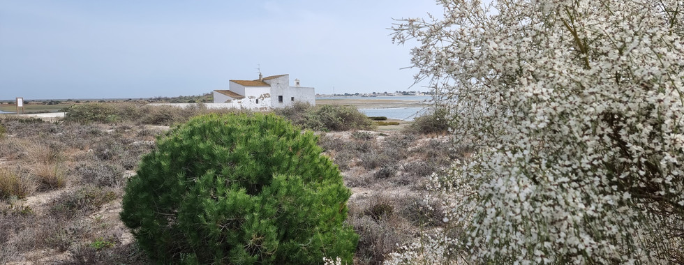 Zum Übernachten standen wir in Fuseta auf einem grossen Parkplatz, mit vielen anderen Mobilen. Unser nächstes Ziel war Olhao, ein ehemaliges Fischerstädtchen mit einer schönen Promenade. Teilweise liefen wir über Holzstege und Dämme. Wir wussten nicht genau, ob wir über den Ribeira de Marim kommen würden. In Mapy war nur eine Eisenbahnbrücke eingezeichnet, kein Weg. Wir hatten Glück. Als wir an dieser Stelle waren, sahen wir, dass ein Steg im Bau war aber noch nicht begehbar. Doch im Wasser lagen grosse Steine, über die man auf die andere Seite gelangte. Ein Stück weiter standen wir an einem Maschendrahtzaun, welcher einen Naturpark umgab, durch den unser Weg führte. Wir entdeckten ein grosses Loch im Zaun. Frech, wie wir waren, betraten wir den Park auf diese Weise. Natürlich bezahlten wir dann den Eintritt, als wir auf der anderen Seite ankamen. Der Park war gepflegt. Diverse Informationstafeln säumten den Weg. Ein Gezeitenkraftwerk war zu sehen, ein alter Brunnen, ein Tierspital, welches aber wegen Corona geschlossen war und anderes mehr.