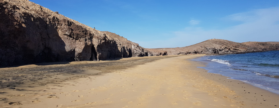 Wir fanden einen Platz mit schöner Aussicht auf die Playa Mujeres und Fuerteventura mit dem kleinen vorgelagerten Inselchen Lobos. Ein paar Segelschiffe ankerten in der Bucht.